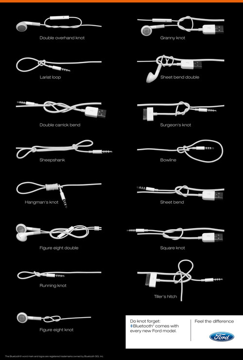 Hate the way your earphones and other cables get tangled when you leave them loose for 5 minutes? Sadly I’m not here to offer a solution, however I am loving the latest advertising campaign from Ford set to highlight the perks of using it’s bluetooth technology.