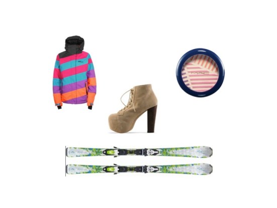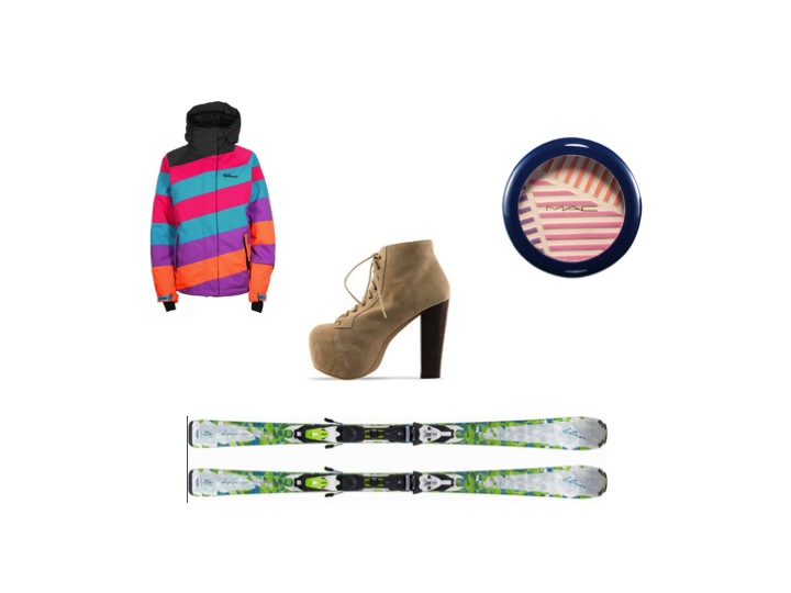 Westbeach Lady Racer Ski Jacket | Jeffrey Campbell Litas in Buttermilk Suede | Mac Hey Sailor Highlighter | Elan Insight Fusion Skis