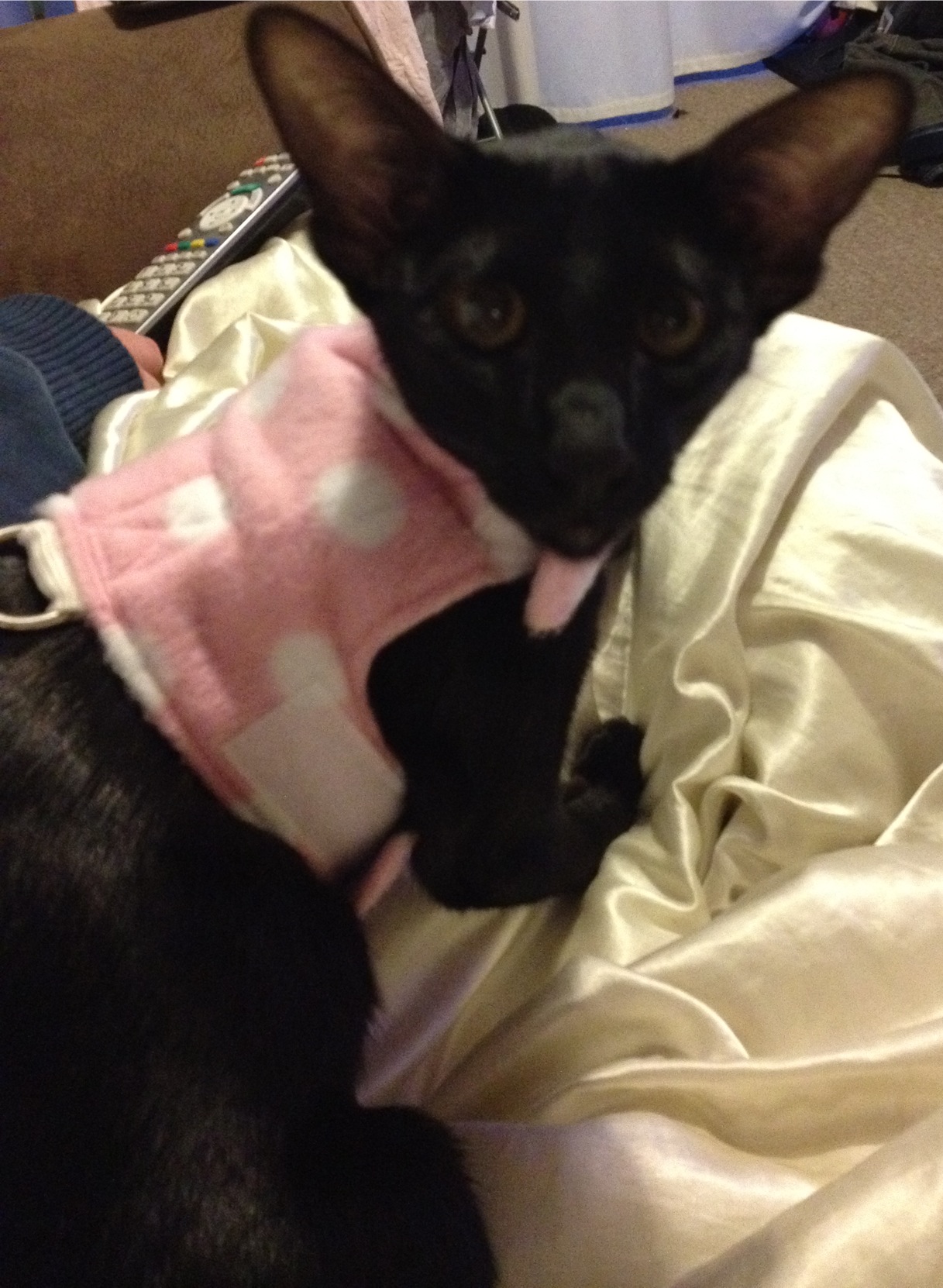 Cleo is an Oriental Shorthair, which is basically a Siamese without the infamous colourings. All my life I’ve had adopted pets, from the cat who appeared at our caravan whilst camping (and never left!) to the horses without riders, with whom there have been many. I’ve loved each and every one of them and the fresh start my family and I have been able to give them, so I must admit it felt a little odd to be visiting a breeder and homing a kitten who wasn’t in need. There was however a very valid reason as to why we chose a pedigree breed, and in particular an Oriental Shorthair and that is that I am highly, highly allergic to fur (or more specifically pet dander and specific proteins found in saliva). For some reason, Orientals produce less of the protein that turns me into a red-eyed, sneezing mess, making owning a pet a pleasurable experience once again. Though if you’re a fellow allergy sufferer don’t expect this to help build your tolerancy to other furry friends, I am still a sneezy mess around other people’s pets.