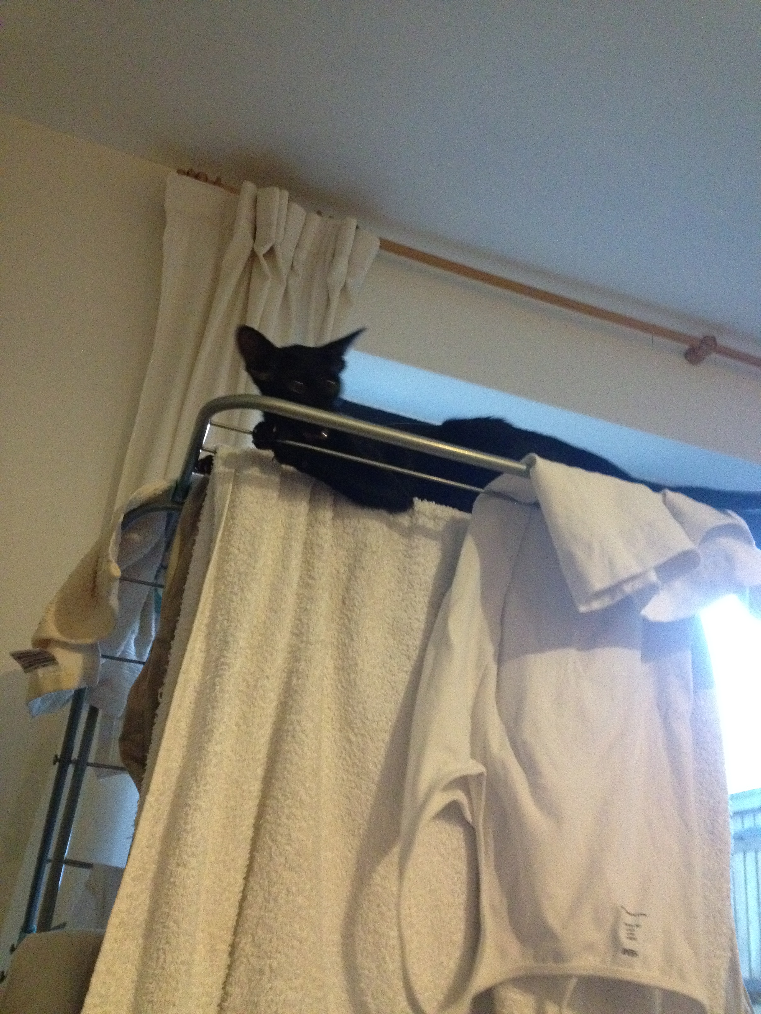 With the typical British springtime well under way we have been forced to dry our clothes on an airer for the last few weeks. To most, it would be obvious that the purpose of the airer is to dry clothes, but not to Cleo! Through our cat’s eyes this is the perfect opportunity to improve her climbing abilities. If it weren’t so funny she’d have had a smacked bum, but it’s near impossible to tell her off when I can barely stand through laughter.