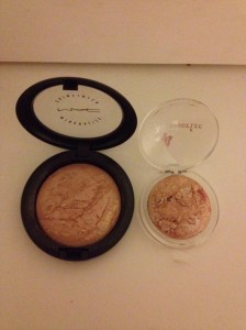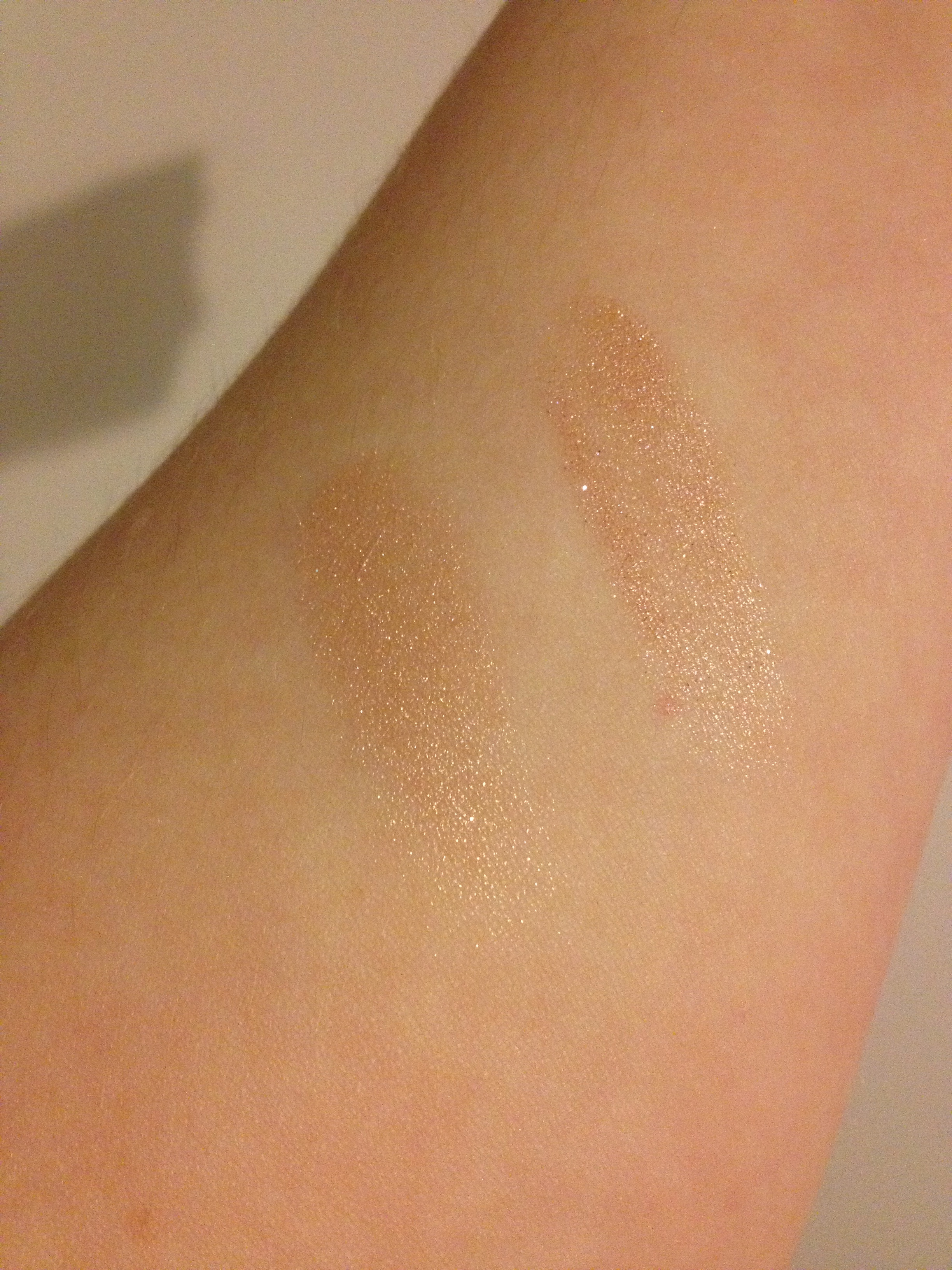 Admittedly on paper these two products are completely different. One is a highlighter and the other is an eyeshadow but when swatched these two become one.