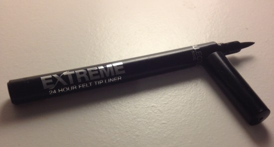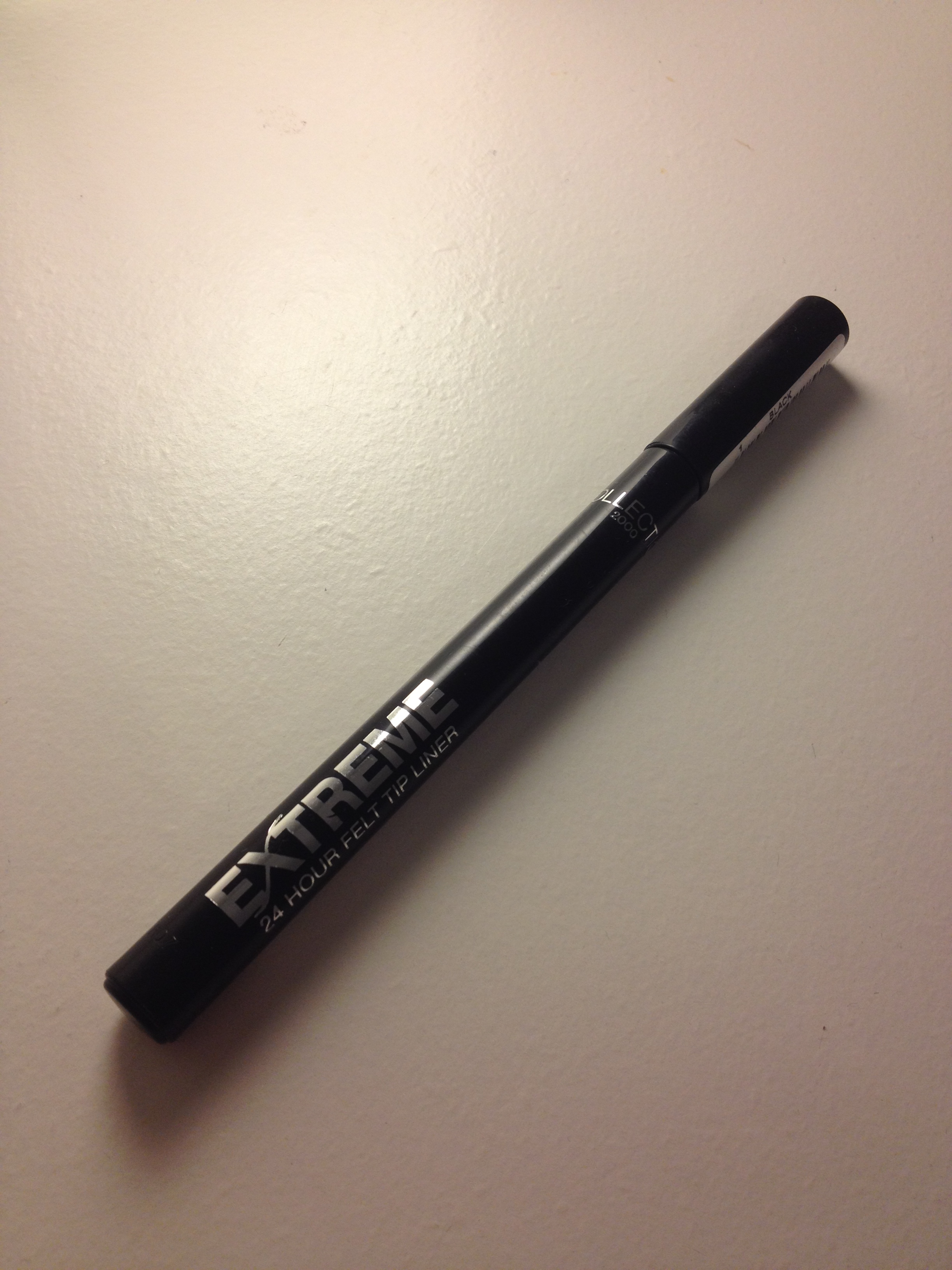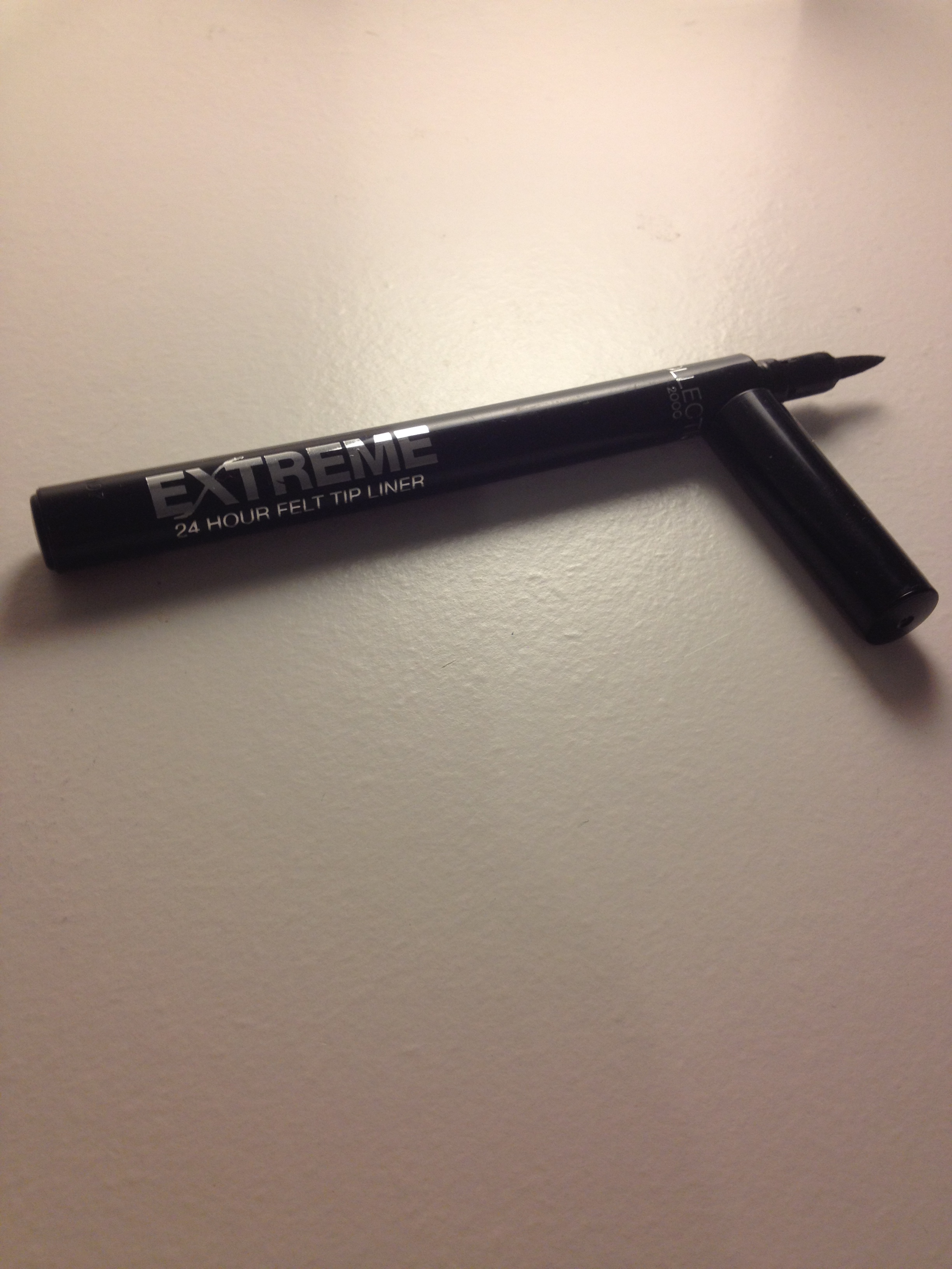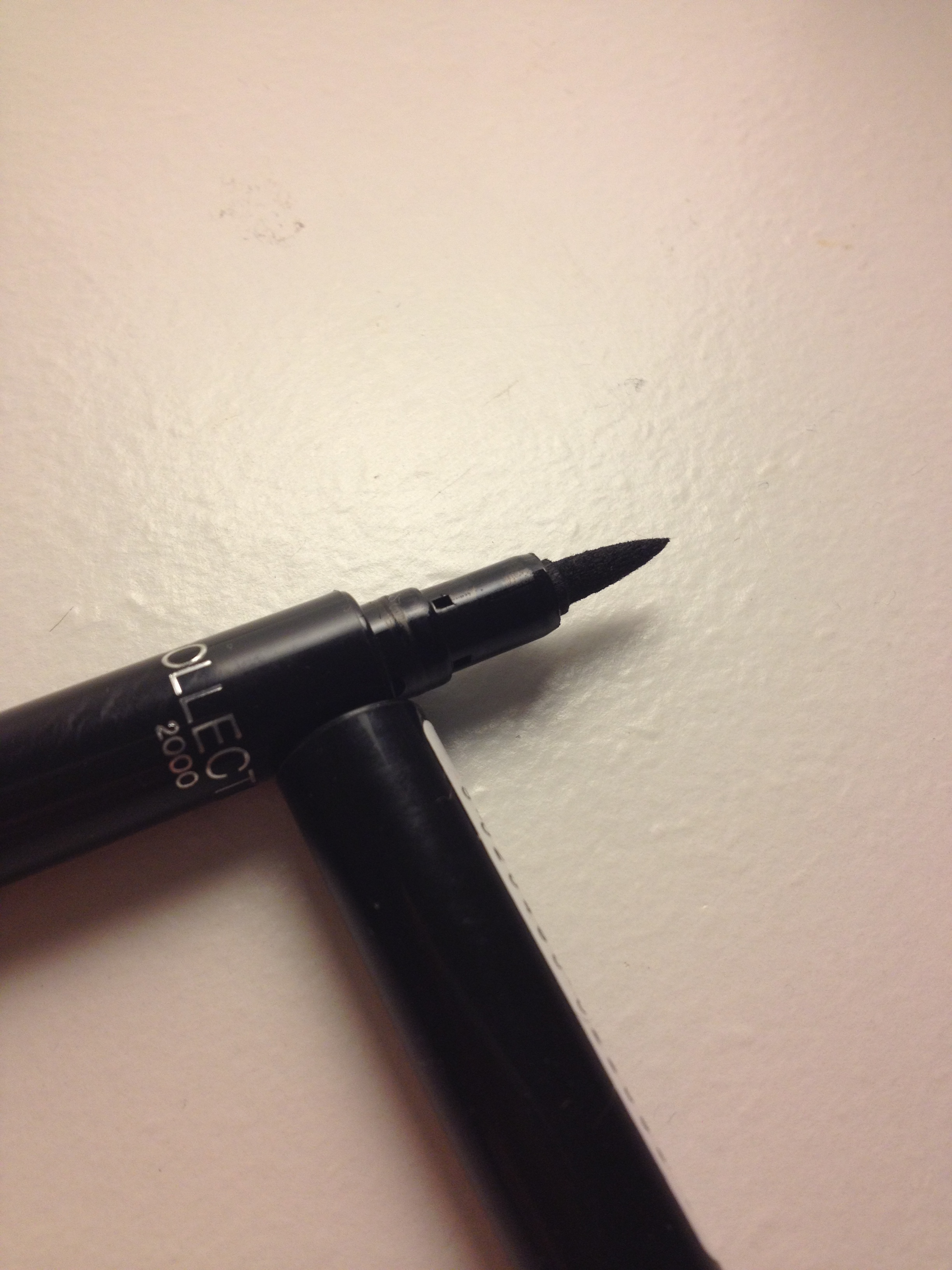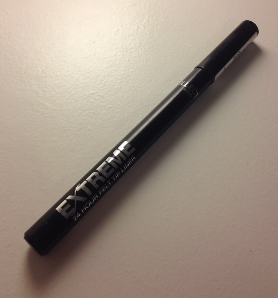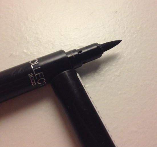 That said it was pure chance that led me to stumble across Collection’s Extreme 24 Hour Felt Tip Liner. Having squiggled every felt tip liner going on my hand I resigned myself to spending £7 to try one out. I then trudged over to the Collection stand looking for a cheap white eyeliner (I’m loving the doll look right now!) only to discover they had their very own felt tip liner at the bargainous price of £2.99. In fact I was so excited I almost bought all four of them (it comes in Black, Purple, Blue and Teal) but eventually I settled on getting just the black one for now!