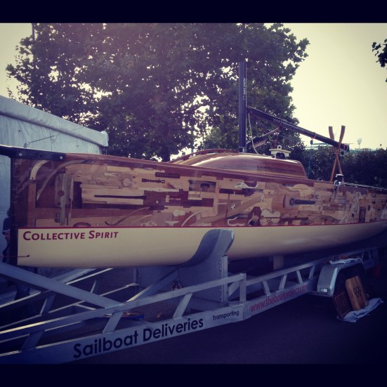 When I spied Collective Spirit I could hardly contain my excitement. For those not in the know, the 30ft yacht was built from over 1,200 donated wooden items including Jimi Hendrix’s guitar, parts from the Mary Rose and a section of Brighton’s West Pier, as part of the London 2012 Cultural Olympiad. You can find out more about Collective Spirit over at The Boat Project.