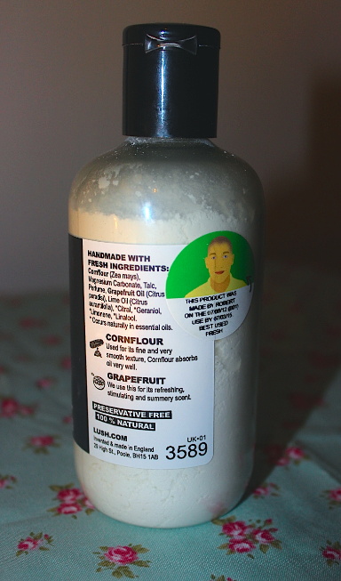 As with all Lush products the No Drought dry shampoo is 100% natural, using cornflour to soak up excess oil whilst the grapefruit scent leaves you smelling fresh. Best of all though is the cute little sticker telling you who made your bottle. Mine was made by Robert. Thanks Robert!