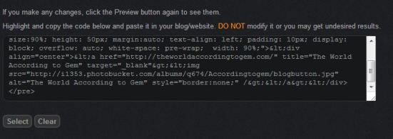 Now you’ve got your link head over to My Cool Realm who have an awesome Grab My Button function that takes away some of the pain of creating a grab-able blog button.
