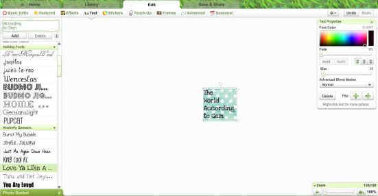Next it’s time to add your text. Click on Text under the Edit tab and type in the text to be displayed on your blog button. Remember you want the text to be readable and memorable, don’t try to cram too much onto the button.