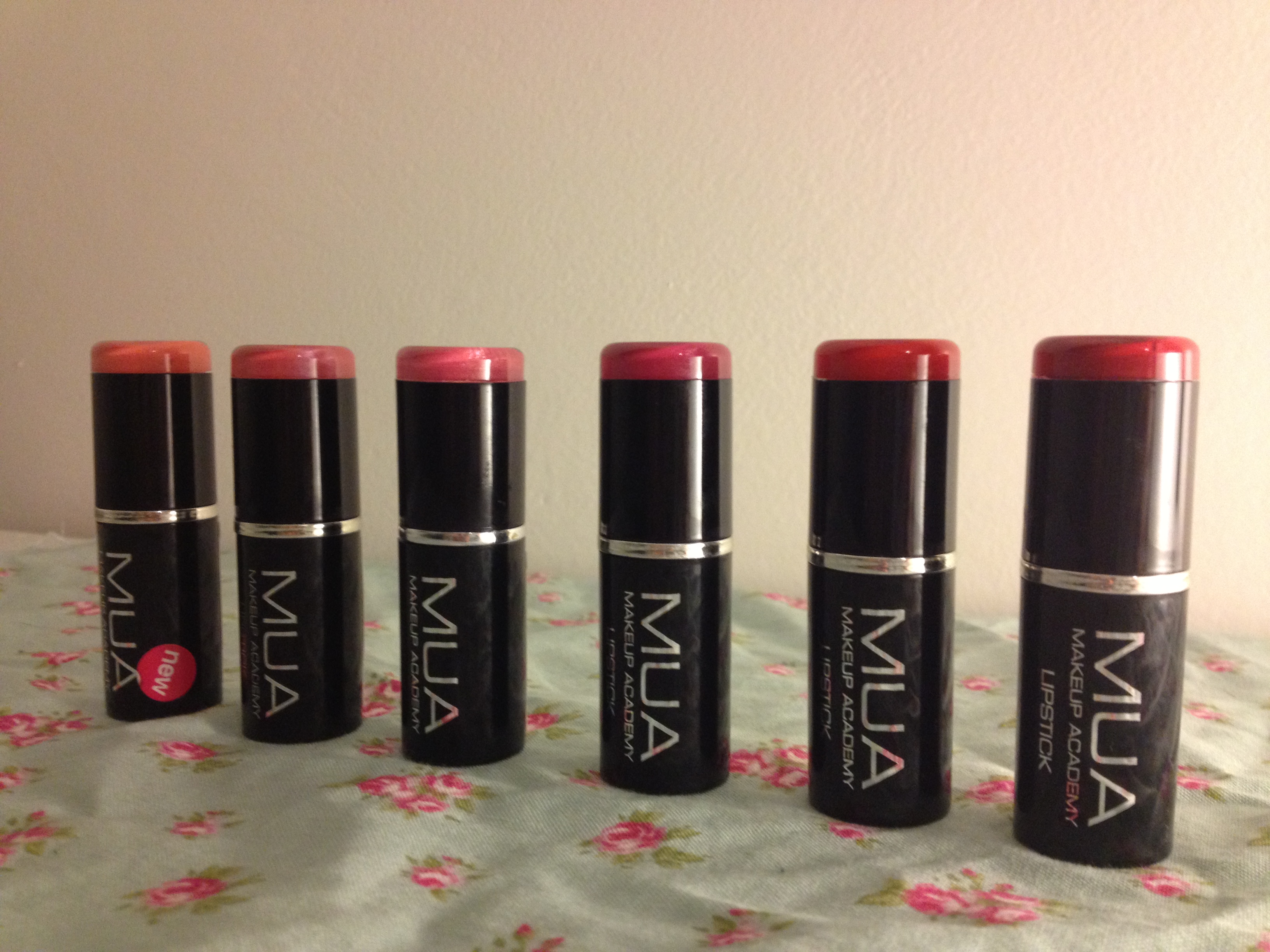 MUA Lipstick Swatches Review Budget BeautyIn total I own 6 MUA Lipsticks in a range of colours. In my opinion if you only want to get a sample of these lipsticks, these are the ones to pick.