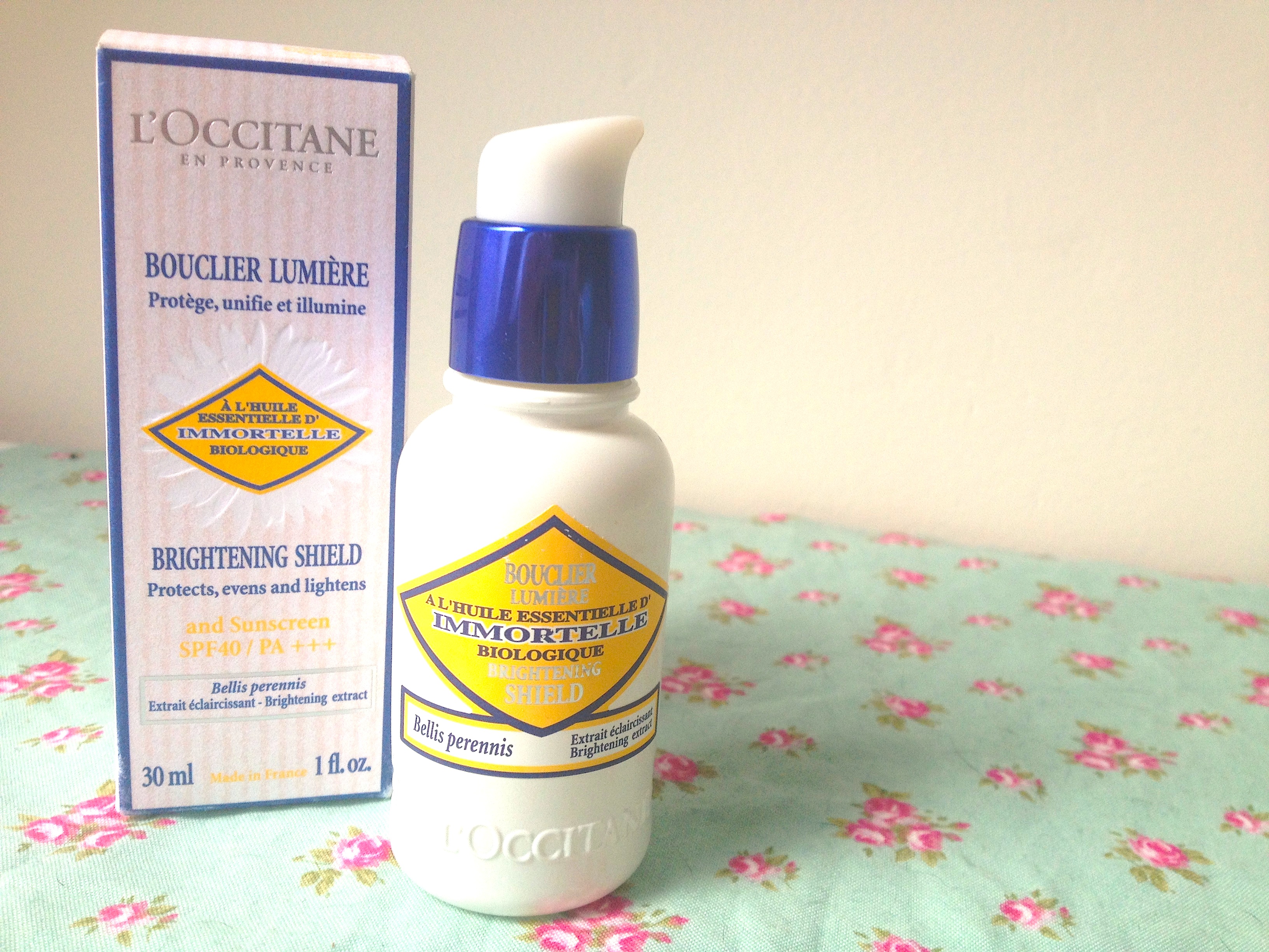 I’d initially gone to L’Occitane on the off chance that the outlet store would have the newly released Immortelle Brightening Mist, they didn’t, but they did have the Immortelle Brightening Shield for just £20 (it usually retails for £34)! I snapped it up immediately, reasoning that the SPF 40 would come in handy when we’re on honeymoon and then had bloggers remorse. Does anyone else get that? That sinking feeling when you’ve purchased something beauty related without checking the reviews on Make Up Alley or scouring the web to see what others thought of it. I shouldn’t have worried though, the brightening shield is freaking amazing!