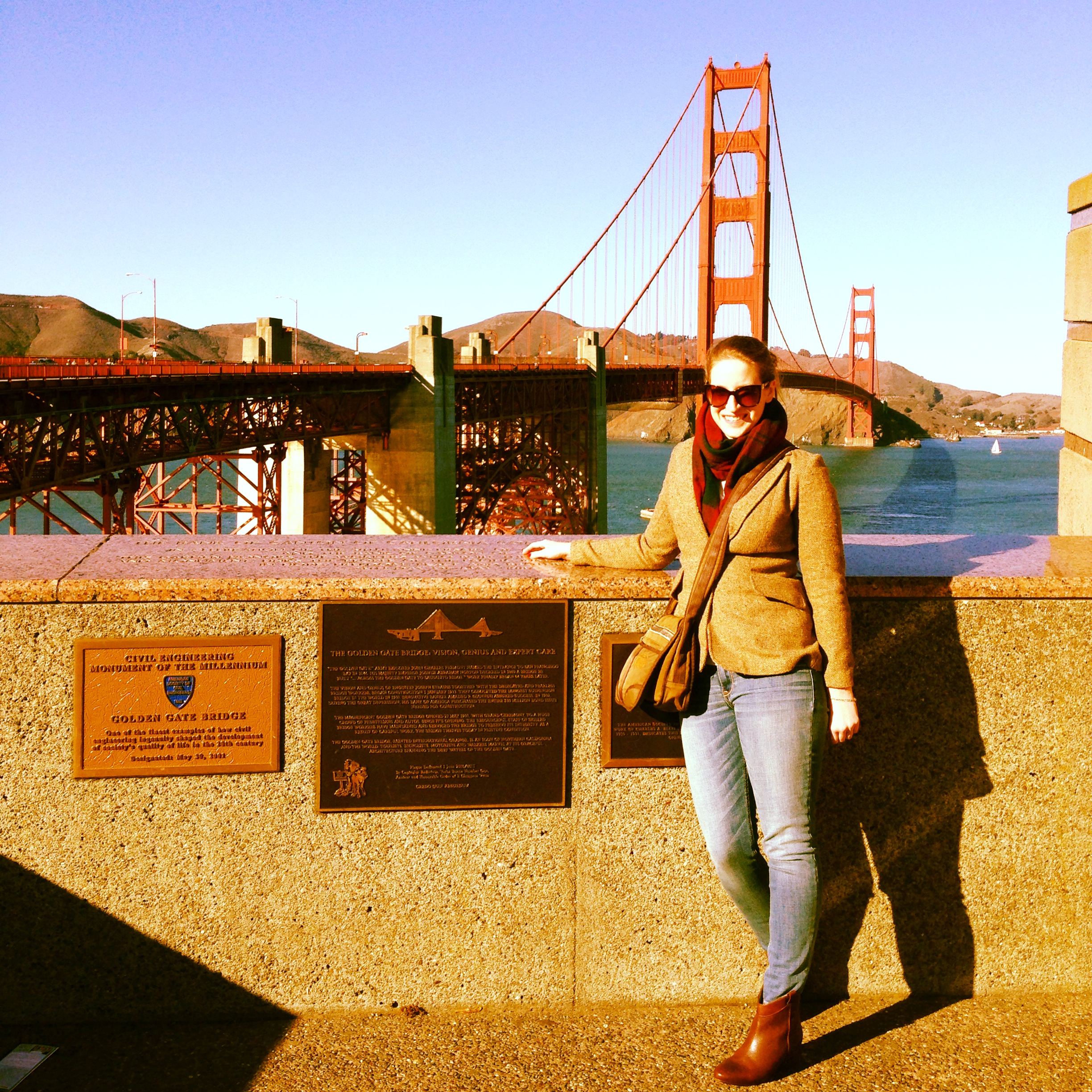 This time last week I donned my scarf and blazer and hopped on the muni to the Golden Gate Bridge. Rach and I were a tad hungover after our work holiday party so we decided the best cure was a walk along the bridge.